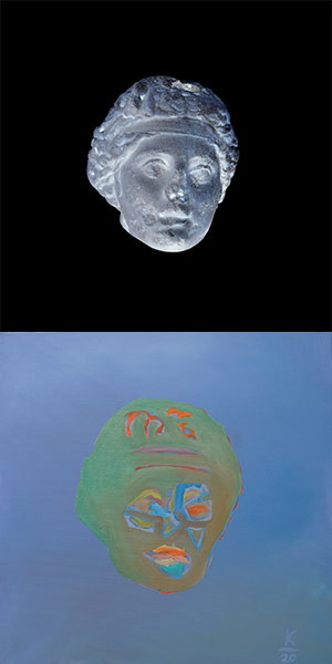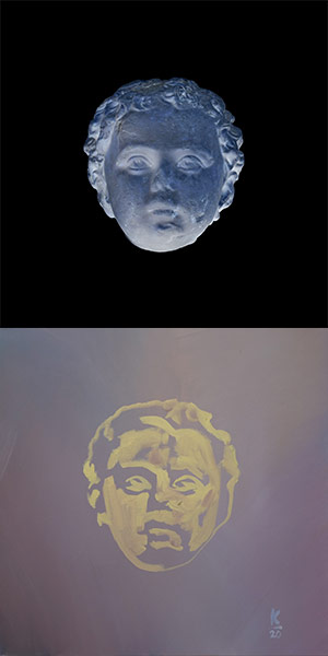 Die Erinnerungen sind die Wiederkehr der Bilder in veränderten Formen, die sich zwangsläufig zu unseren aktuellen Bilderwelten der Selfies, Smileys und Face-App-Masken in Beziehung setzen. Es soll bewusst werden, dass auch unseren aktuellen medialen Selbstbildern Mimik, Blick und Sprache fehlen.